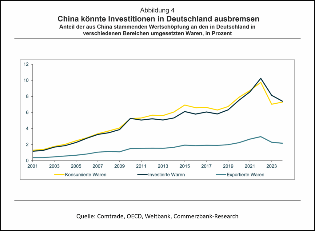 Vor dem Hintergrund der von der Bundesregierung ausgerufenen „Investitionsoffensive“ ist die hohe Abhängigkeit von China besonders prekär. Denn ein Handelskrieg und Mangel von Investitionsgütern würden die Bemühungen der Bundesregierung mindestens stark ausbremsen.