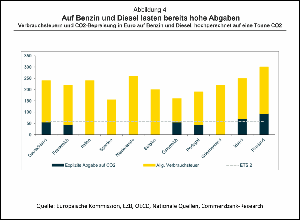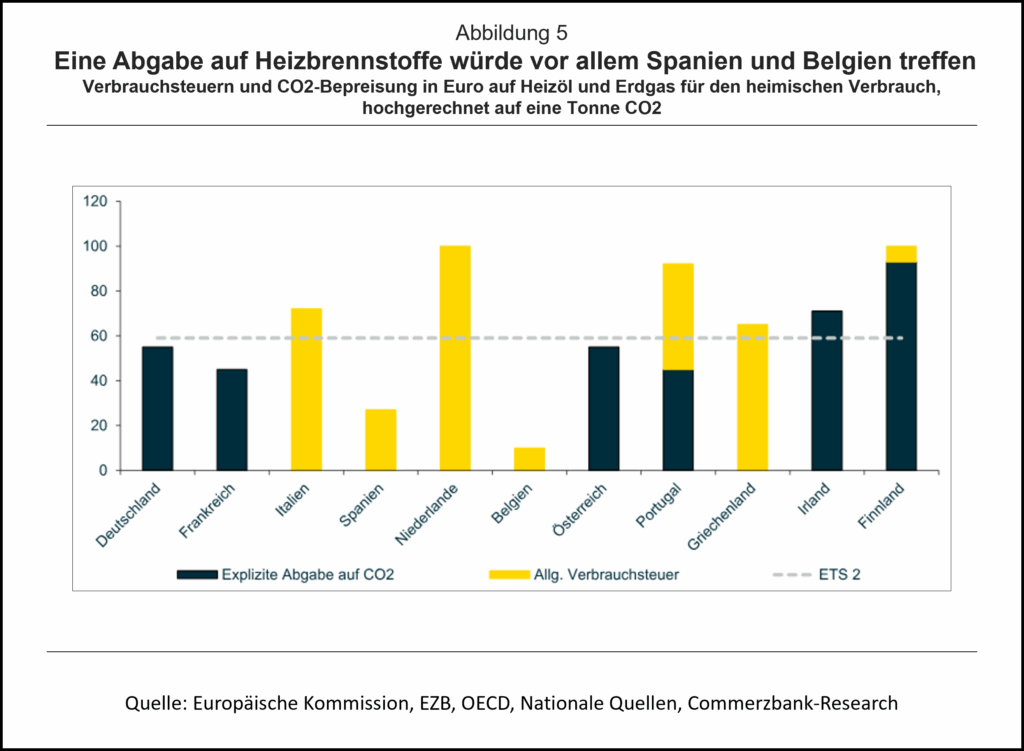 Insgesamt dürfte sich für Unternehmen in vielen Ländern durch den Start des ETS 2 nur wenig ändern. Lediglich in Spanien und Belgien könnte Heizöl spürbar teurer werden. In diesen Ländern könnte auch Benzin und Diesel teurer werden, wenn die Verbrauchsteuern hier nicht gesenkt wird.