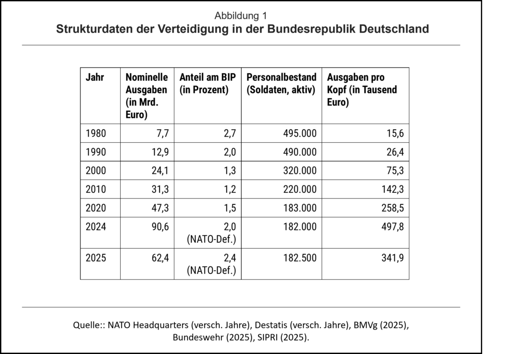 Statistisches Bundesamt (Destatis) (Verschiedene Jahre), Militärausgaben und Personal der Bundeswehr.