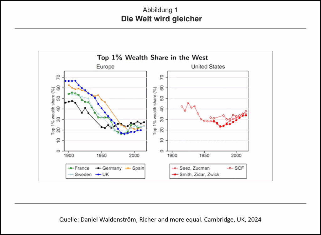 Ungleichheit polarisiert, auch bei ungleich verteilten Vermögen. Linke wollen die Milliardäre abschaffen, sie aber zumindest mit einer Vermögen- und Erbschaftsteuer kräftig zur Ader lassen. In neueren empirischen Untersuchungen (Daniel Waldenström) wird der These steigender Vermögensungleichheit (Thomas Piketty) allerdings widersprochen. Kapitalfundierte Alterssicherungssysteme und Wohnungseigentum für breite Schichten machen den Unterschied. Alles, was westliche Gesellschaften reicher macht, macht sie auch gleicher („The rising tide lifts all boats.“). Eine Ausnahme sind die USA. Wohlstand wächst nur bei intensivem Wettbewerb auf ökonomischen und politischen Märkten. Auf beiden besteht dringender Handlungsbedarf. Mehr (Real- und Human)Kapital, mehr (qualifizierte) Arbeit, mehr (technologisches) Wissen treiben das Wachstum. Eine Reform der Alterssicherung hin zu mehr Kapitalfundierung, mehr Wettbewerb und weniger Planwirtschaft auf den Immobilienmärkte und mehr soziale Mobilität durch intaktere Familien, bessere Bildung und flexiblere Arbeitsmärkte gehen in die richtige Richtung. Der Weg über (massive) Umverteilung von Vermögen (und Einkommen) ist ein Irrweg. Eine umfassende Angebotspolitik ist das Gebot der Stunde. Dann klappt es auch mit mehr „Wohlstand für Alle“ (Ludwig Erhard).