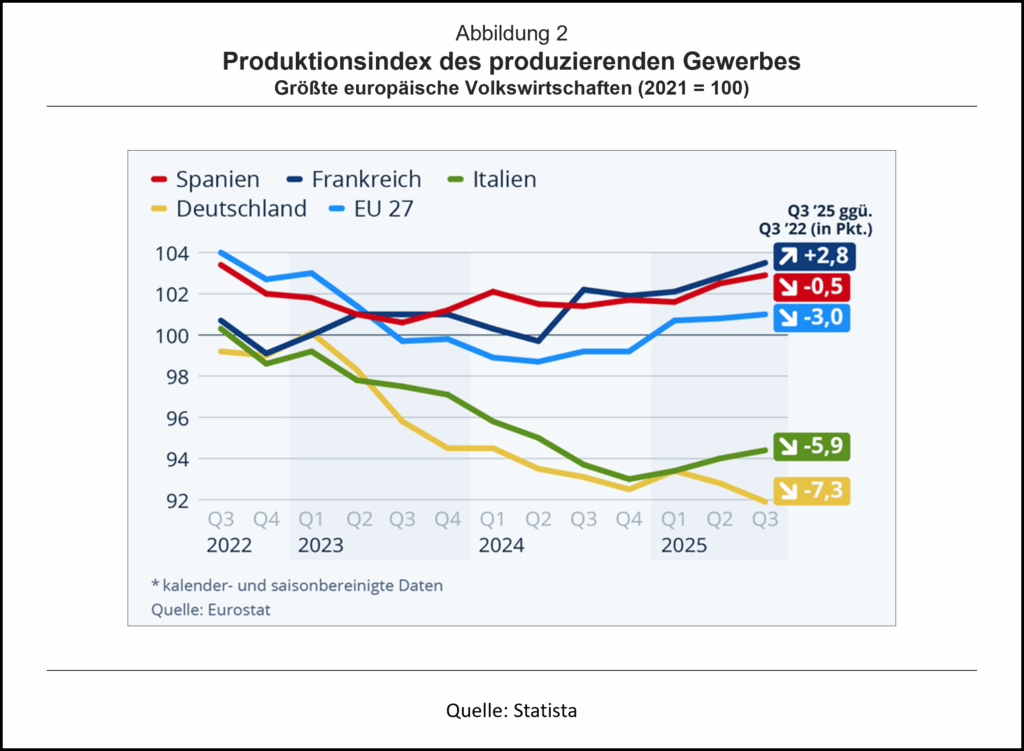 Deutschland ist wirtschaftlich in Schwierigkeiten. Es ist nicht die Konjunktur, es ist die Struktur. Der sektorale Strukturwandel macht Deutschland zu schaffen. Das industrielle Herz – Auto, Maschinenbau, Chemie – ist aus dem Rhythmus. In allen drei Branchen brechen die Gewinne ein (Mercedes, BASF), sie bauen inländische Arbeitsplätze (Maschinenbau) in großem Stil ab. Die gesamte Industrie hat seit 2019 fast 300.000 Jobs verloren, allein 2025 waren es über 110.000. Ein Ende ist nicht in Sicht. Die „Gesetze“ des Strukturwandels gelten auch für die deutsche Industrie. Damit muss ein Land und seine Bürger leben (lernen). Die Politik hat nichts Besseres zu tun, als Öl ins Feuer des Strukturwandels zu gießen. Sie beschleunigt den industriellen Niedergang. Das Gespenst der „rust belts“ könnte bald auch in Deutschland spuken. Es ist allerdings zu hoffen, dass die Politik die sektorale „Strukturpeitsche“ wieder aus der Hand legt.
