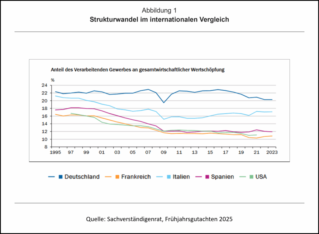Die Politik kann einiges tun, um zu verhindern, dass die De-Industrialisierung außer Kontrolle gerät. An den Lasten aus dem marktgetriebenen Strukturwandel lässt sich wenig ändern. Sie lassen sich nicht mehr verhindern. Wenn es dumm läuft, werden China (Mehrproduktion) und Trump (Zölle) sie noch verstärken. Da hat sich einiges aufgestaut. Dieser Stau löst sich gerade auf. Arbeitnehmer müssen die Lasten über flexible Löhne und eine höhere regionale, sektorale und berufliche Mobilität tragen, Unternehmen über Abschreibungen auf ihre Investitionen. Die Lasten aus dem politikgetriebenen Strukturwandel sind dagegen nicht gottgegeben. Dieser politische Unfug ist reversibel. Wichtig ist: Die Politik muss in der Energie- und Klimapolitik grundlegend umsteuern. Und sie muss einen der wichtigsten Kostentreiber, den wenig effizienten und auch nicht gerechten Sozialstaat, in den Griff bekommen.