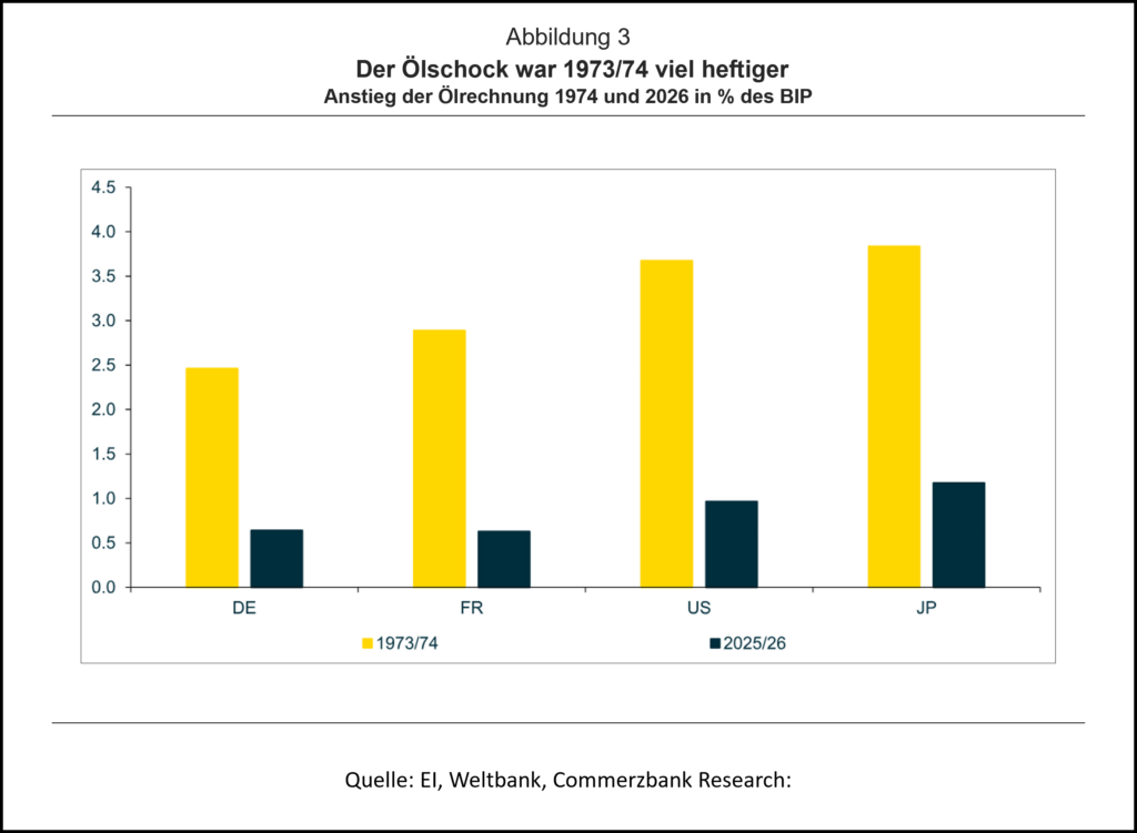 - 1973 kam es nur zu einem recht kurzen Rückgang der Ölförderung. Sollte die aktuelle Krise nicht bald enden, drohen länger anhaltende Ausfälle mit entsprechend größeren Auswirkungen. Im Unterschied zur ersten Ölkrise wurden jetzt auch Öl- und Gasförderanlagen in der Golfregion beschädigt. Darunter fällt neben zahlreichen Raffinerien auch die weltgrößte Anlage für die Erdgasverflüssigung in Katar. Die Reparatur dieser Anlage dürfte längere Zeit in Anspruch nehmen.